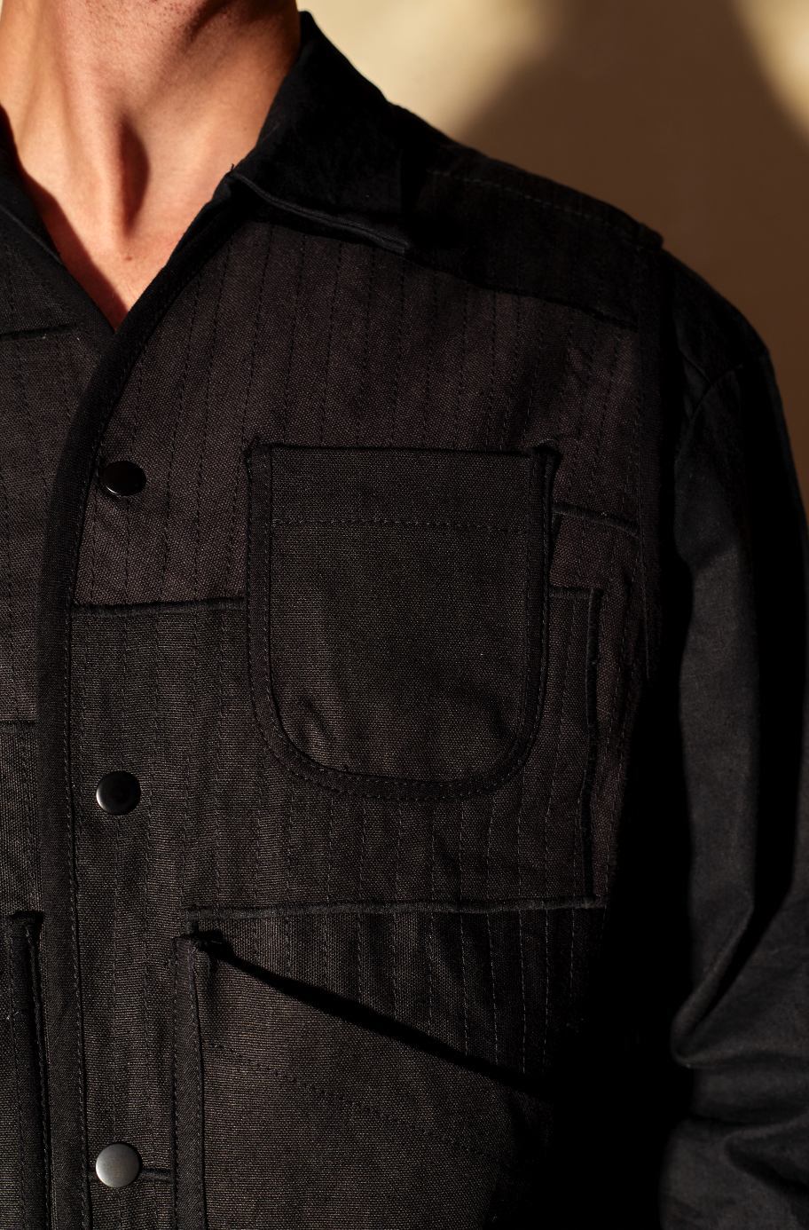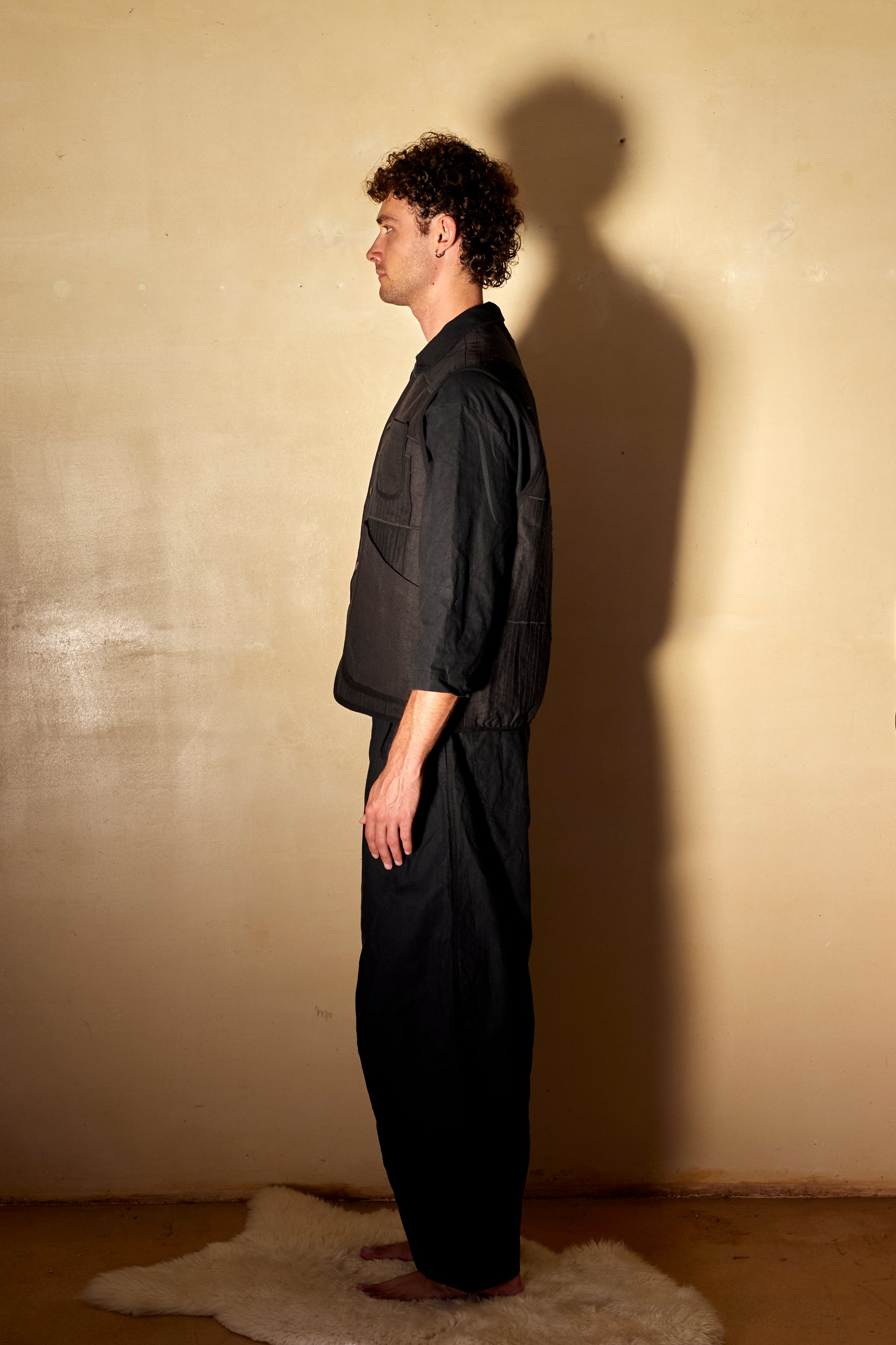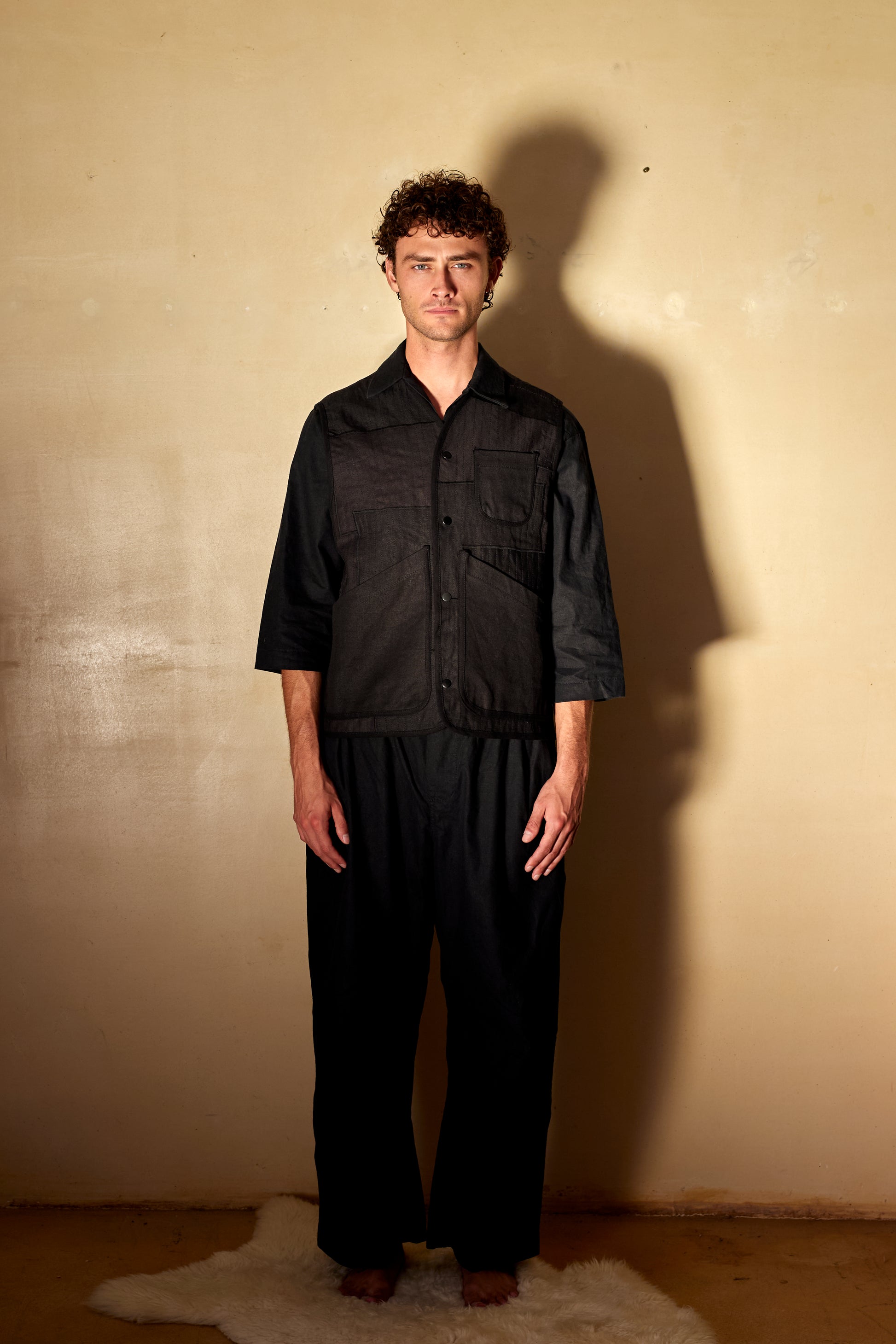Inspired by traditional workwear and reimagined through the lens of quiet luxury, The Miro Vest is a study in utility, texture, and transformation.