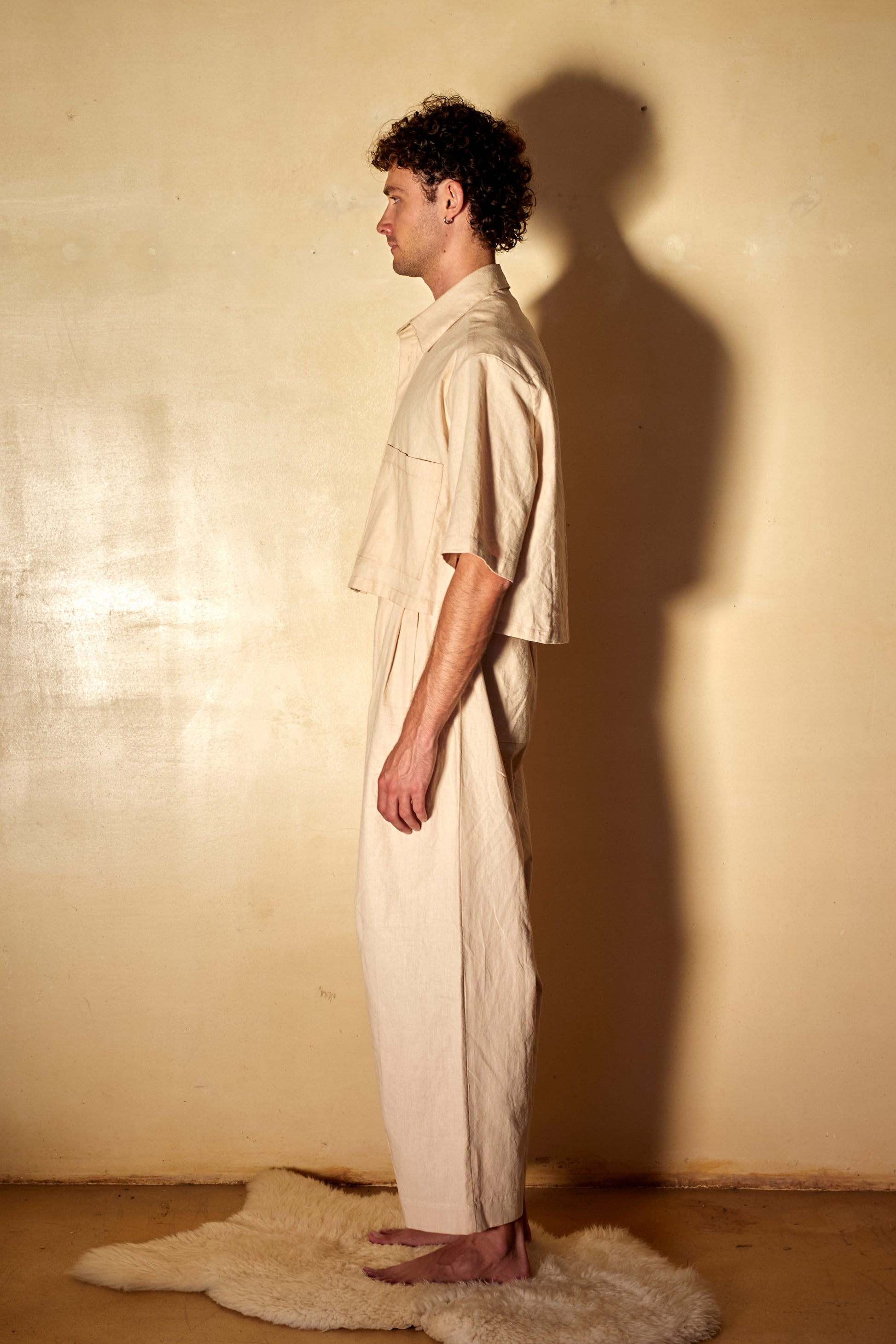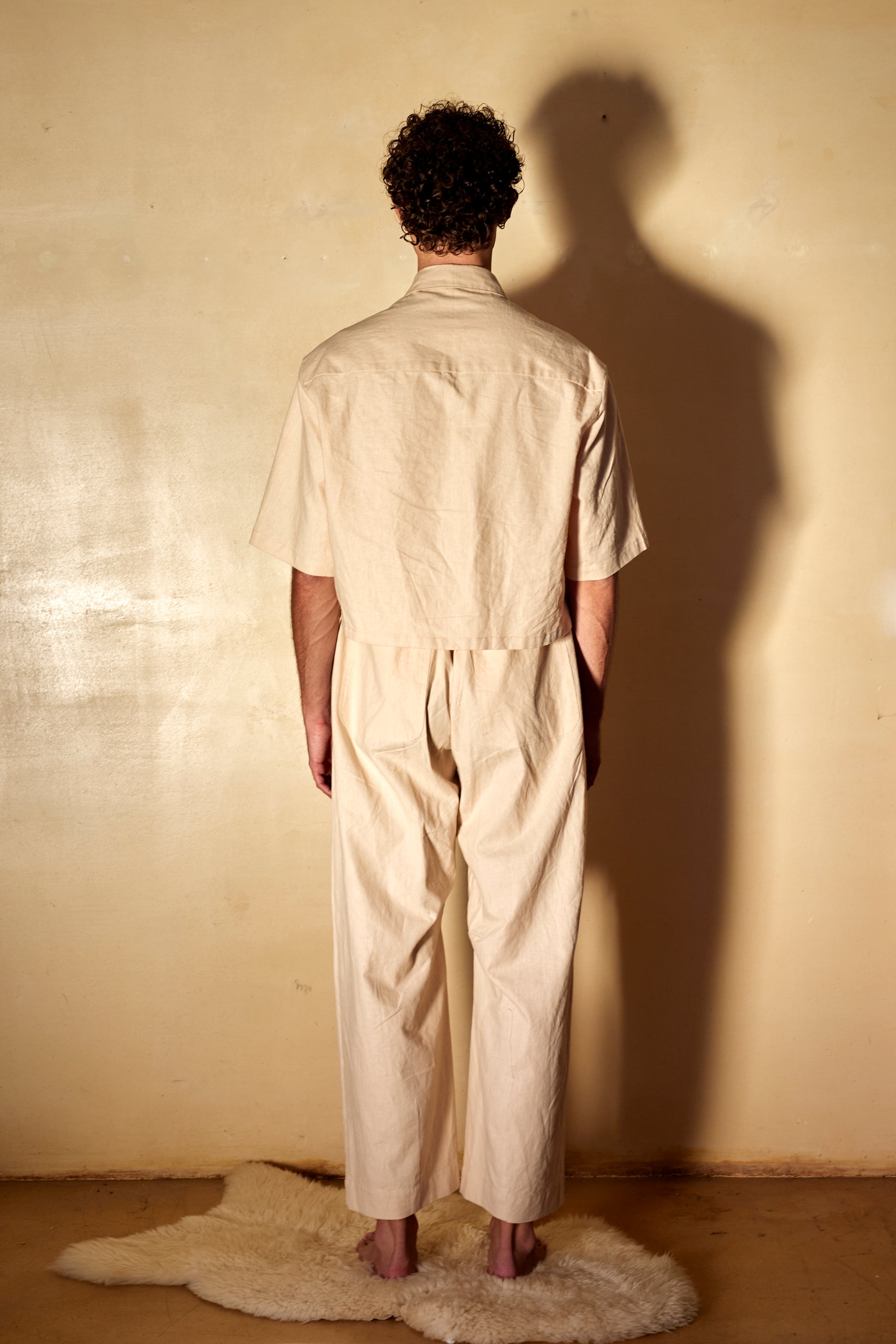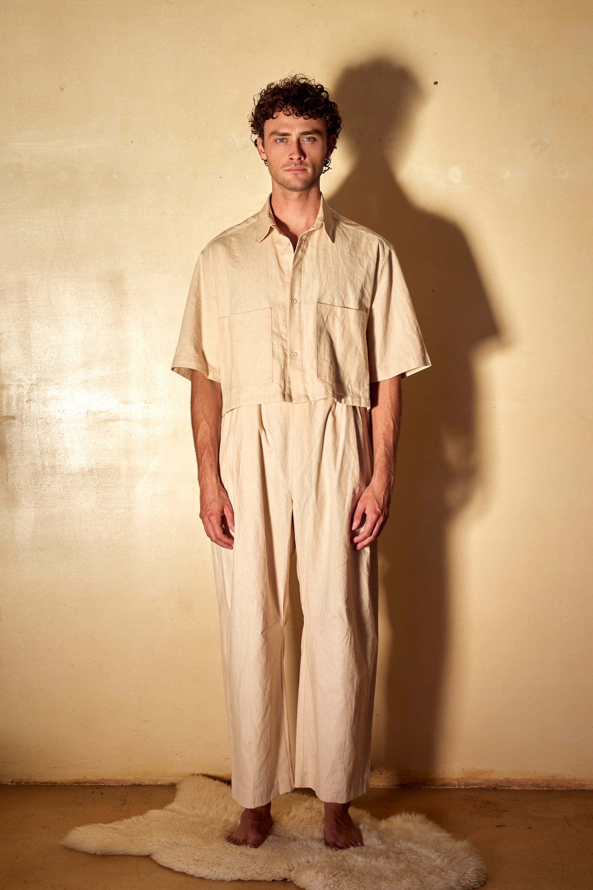 Structured ease meets soft tailoring in The Suki Shirt—a boxy, cropped silhouette cut in a breathable organic cotton and hemp linen blend.